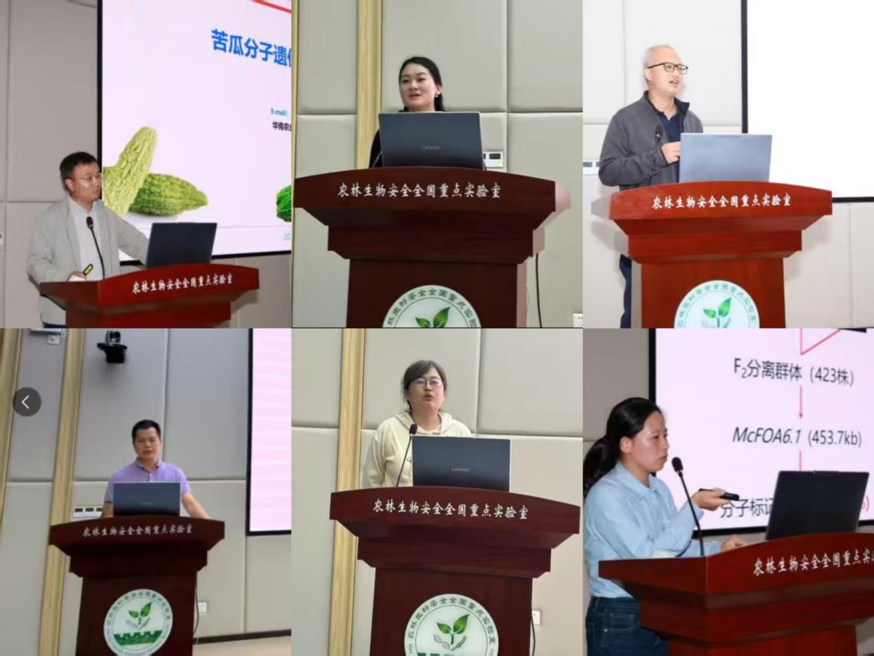 学术报告会上,孙思惟对各位专家的到来表示欢迎,介绍了williamhill英国官网园艺学院的发展现状及在特色蔬菜育种技术创新、新品种选育方面的显著成效。中国农业科学院蔬菜花卉研究所孙进京研究员、华南农业大学园艺学院陈长明教授等6位专家,分别围绕黄瓜单性花发育调控机制、辣椒素转运积累分子机制、苦瓜抗白粉病育种、分子遗传育种等主题作主旨报告。报告内容紧扣产业需求与科研前沿,为全国特色蔬菜育种提供了新思路、新模式。