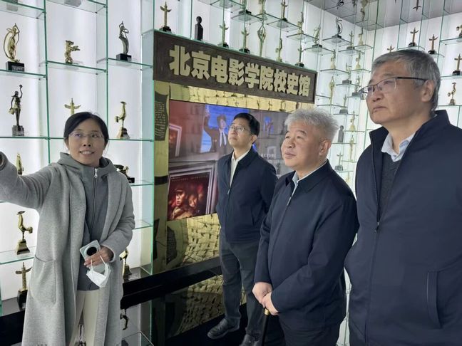 调研期间,赖海榕一行参观了北京电影学院的校史馆和艺术展,详细了解学校辉煌的办学历史和育人特色,并实地调研了声音创作与工程中心的消声室、录音棚、预混棚、电影终混棚、音乐混棚等实践教学场所。