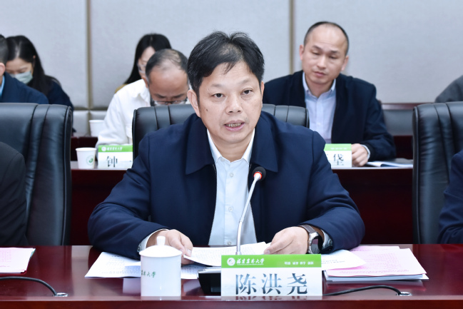 陈洪尧做总结讲话,对学校近年来在人才培养、学科建设、科技创新、成果转化等方面取得的成效表示充分肯定,要求学校要深入学习贯彻习近平总书记关于教育、科技、人才工作的重要论述,全面落实重要回信精神,大力培养堪担民族复兴重任的卓越工程师人才队伍;要持续深化校企协同育人机制建设与升级;要深度优化学科专业布局与跨学科交叉融合;要着力健全卓越工程师学院培养质量保障体系,扎实推进工程硕博士校企联合培养试点和卓越工程师学院建设,构建“新工科+新农科”交叉培养新模式,为福建省乃至全国工程教育改革和研究生教育高质量发展贡献福农智慧和福农力量。