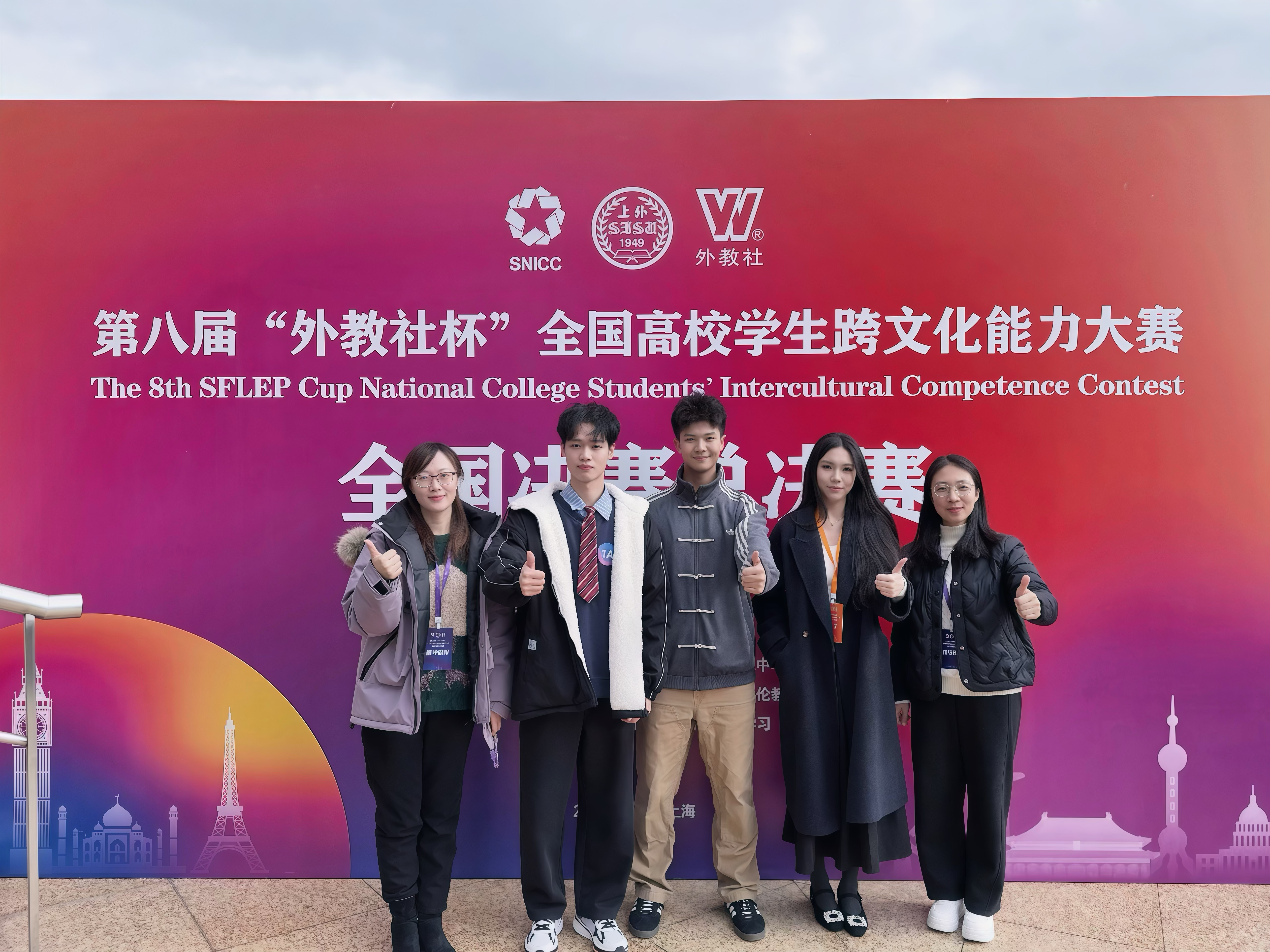 第八届“外教社杯”全国高校学生跨文化能力大赛全国决赛总决赛于2025年12月11日至12月14日在上海外国语大学举行。戴尔豪西大学联合学院(国际学院)英语专业林煜聪、风景园林(中加)专业陈枫红、邹作易同学,在李欣、刘玮、林晔三位老师的指导下,凭借优异的表现在10月份的福建省赛中脱颖而出,以全省冠军的成绩晋级国赛,并荣获全国决赛二等奖,创下williamhill英国官网参加该项赛事以来的历史最好成绩。
