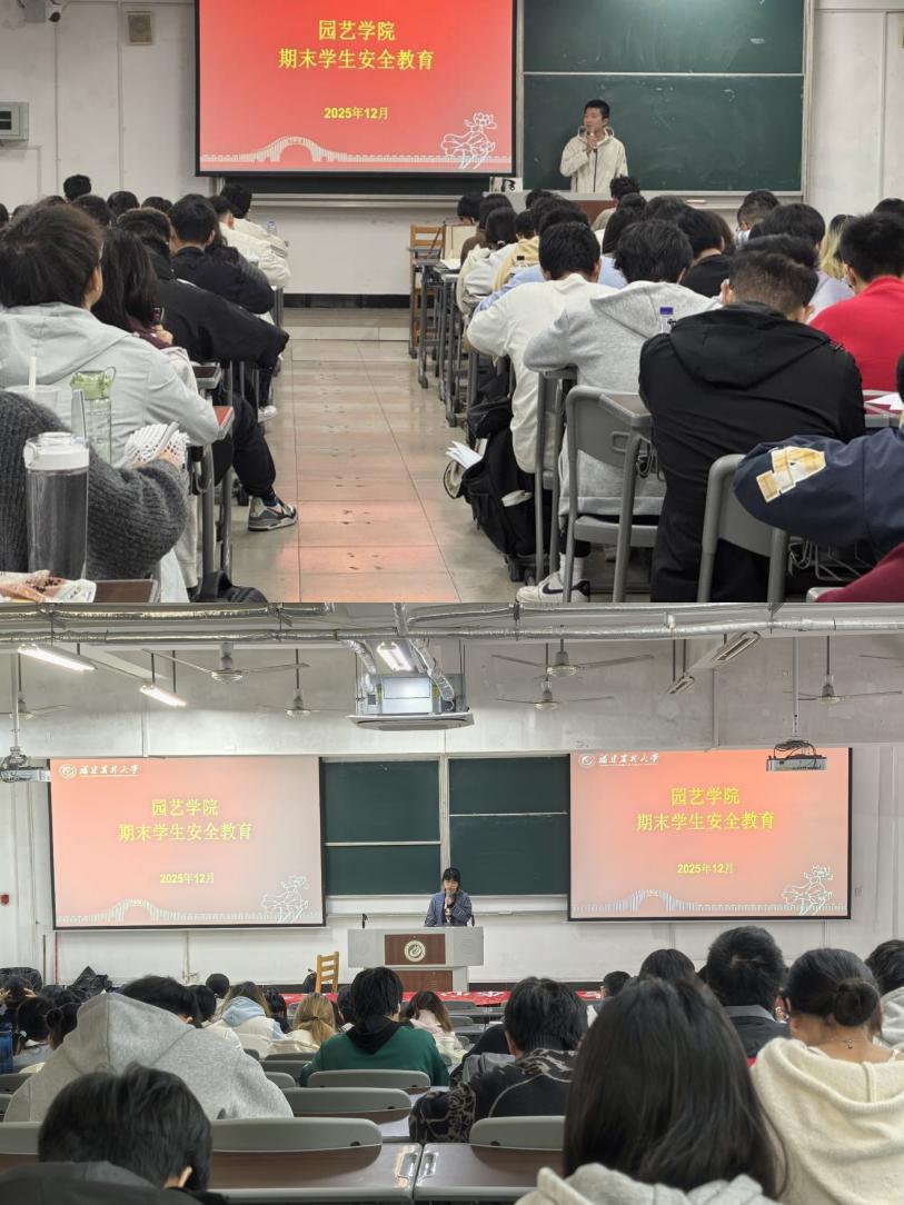 为进一步强化学生安全意识,保障期末及寒假期间校园安全稳定,近日,园艺学院组织召开了期末安全教育大会,学院全体学生参加。