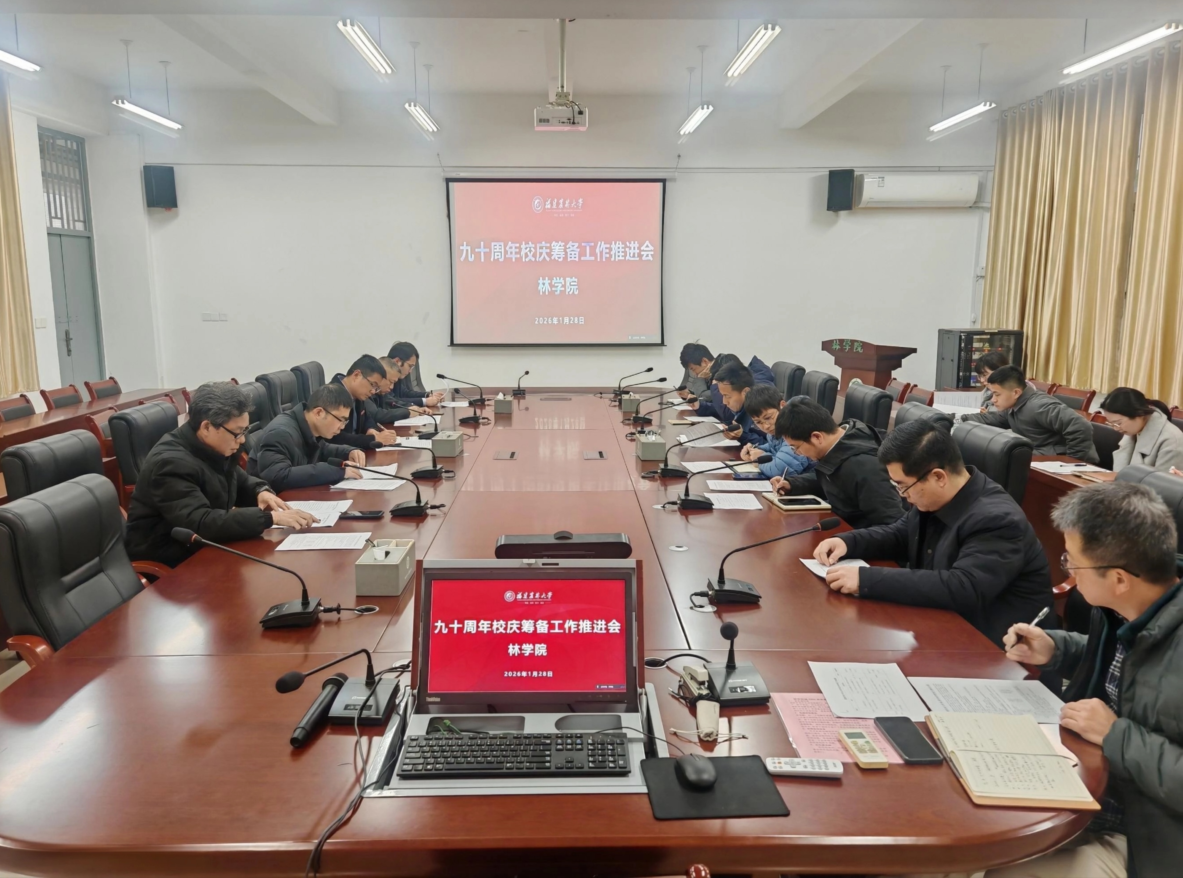 1月28日上午,林学院在诚A206召开专题会议,深入贯彻落实学校九十周年校庆筹备工作推进会暨校友基金工作会议精神,全面部署学院层面校庆筹备工作。会议由学院党委书记余坤勇主持,学院领导班子全体成员、各系负责人、科级干部及政工干部参会,共同谋划推进校庆各项事宜。