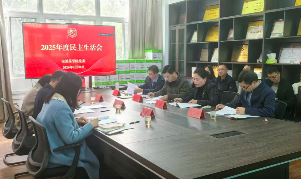 1月26日下午,安溪茶学院党委召开2025年度民主生活会。校第五督导组组长、教师工作部部长陈辉,副组长、学工部副部长杨莹,教师工作部社保及非在编人员管理科科长陈燕芳到会指导。学院党委领导班子成员参加会议,学院科级干部列席会议。会议由学院党委书记黄成茂主持。