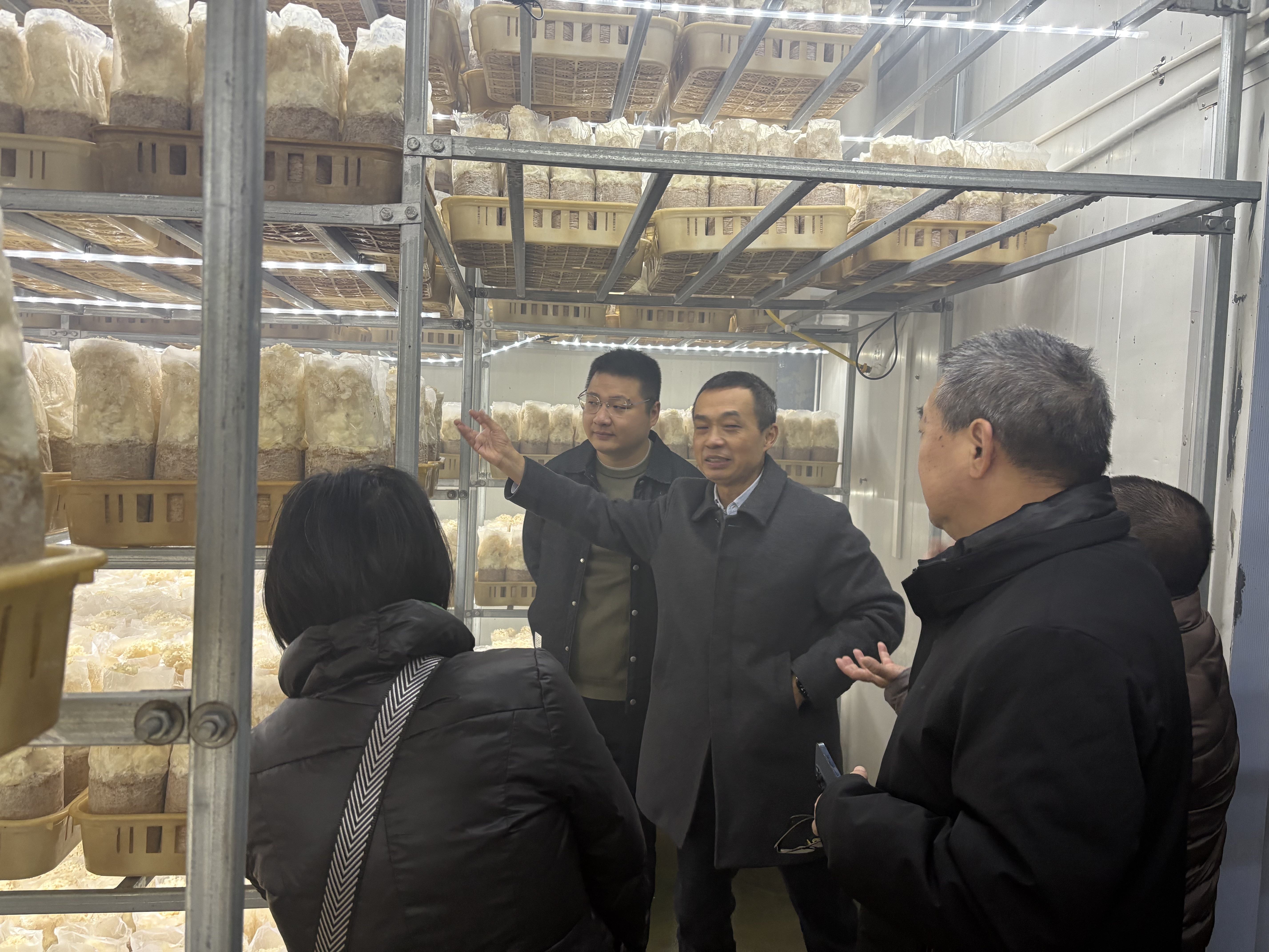 参观绣球菌培育车间