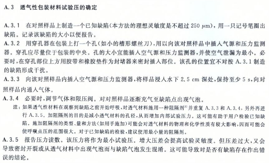 无菌医疗器械包装内压法检测粗大泄漏气泡法测试方法